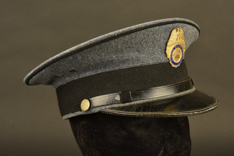 En drap bleu clair, liseré noir faisant le tour de la partie supérieure de la coiffe. Bandeau en mohair noir. Fausse jugulaire et visière en cuir noir. Insigne en métal doré et bleu de la... en savoir plus