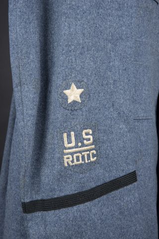 Vareuse en drap gris/bleu, tous les boutons sont présents. Patch Riverside monté machine. Insigne brodé US ROTC. Intérieur doublé en satinette grise. Etiquette du fabricant Philadelphia... en savoir plus