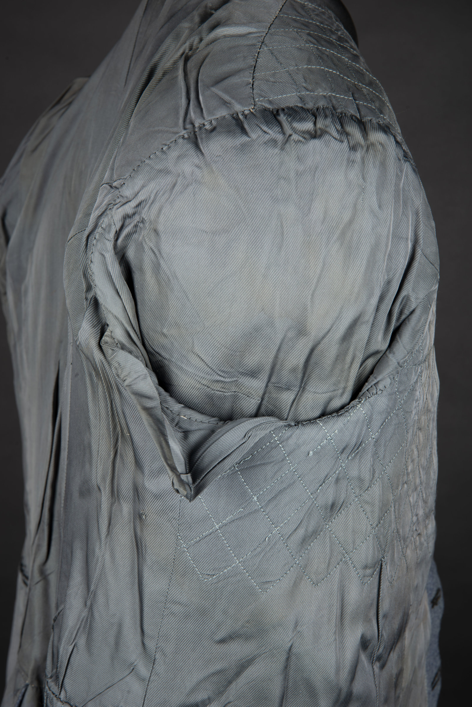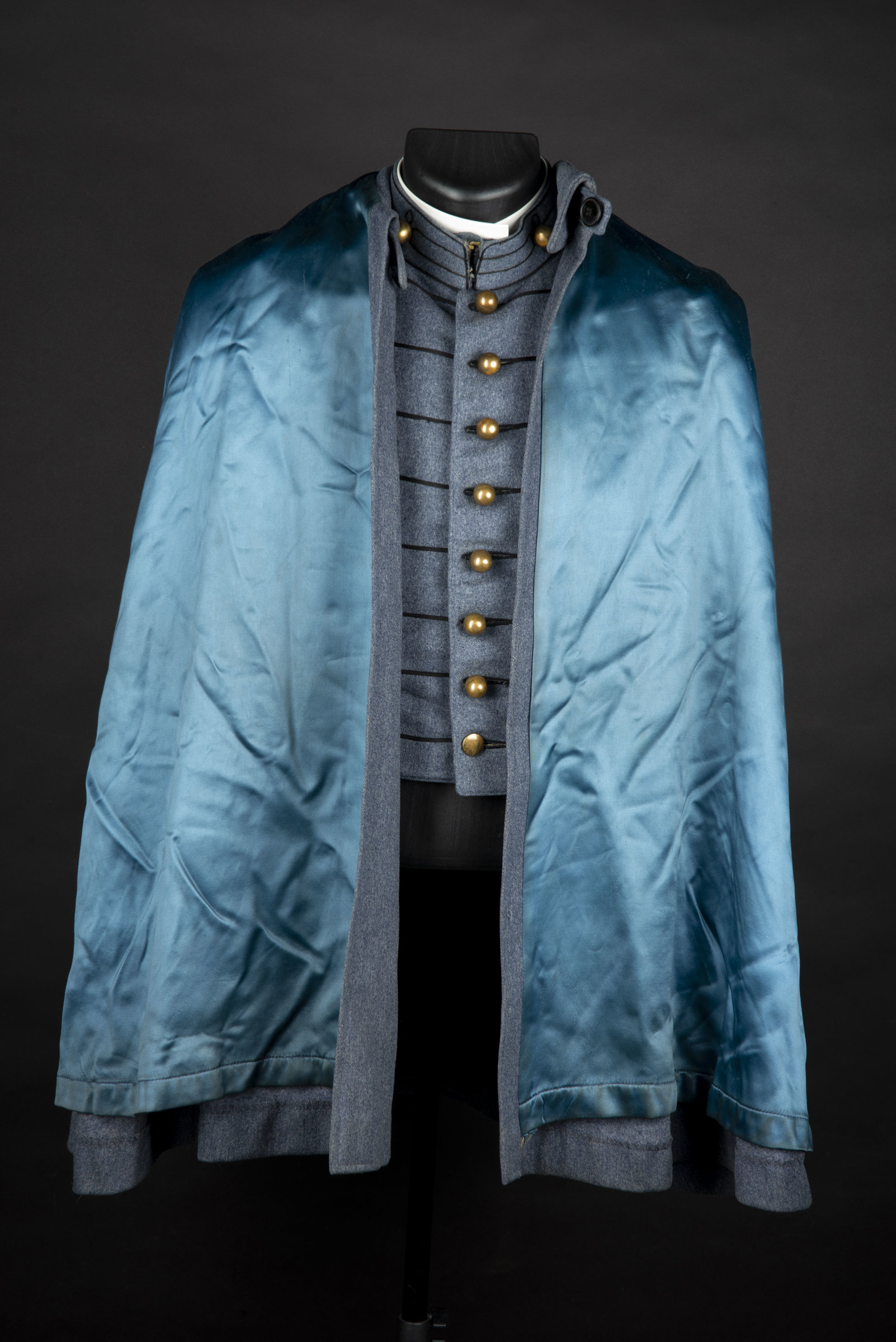 Comprenant une cape en drap gris/bleu, la cordelette est présente, doublé de satinette verte. Etiquette dans le col du tailleur Caleb V Smith & Son, Peekskill Academy, taille médium. Une... en savoir plus