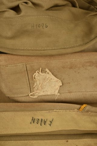 Trois calots en tissu chino, liseré jaune de la cavalerie. Restes d’étiquettes présentes. A noter une certaine usure et patine des pièce, ainsi que des tâches. Photos supplémentaires... en savoir plus