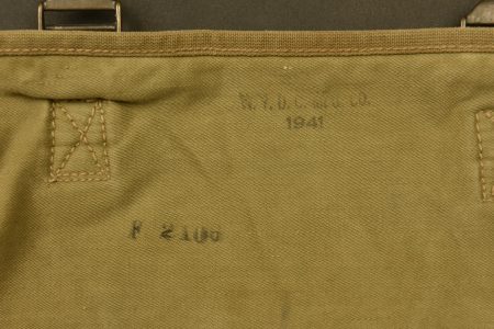 En toile OD, la sangle de transport est manquante. Beau marquage US sur le rabat. Fabrication NYD MFG CO 1941. A noter une certaine patine de la pièce. Photos supplémentaires sur www.aiolfi.com.... en savoir plus