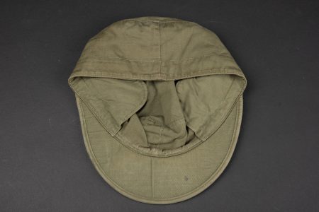 En popeline kaki, rabat doublé de drap. Etiquette du fabricant Shapely Cap Co, datée du 7 février 1945. Taille 7 1/4. A noter une légère usure et patine de la pièce. Photos supplémentaires... en savoir plus
