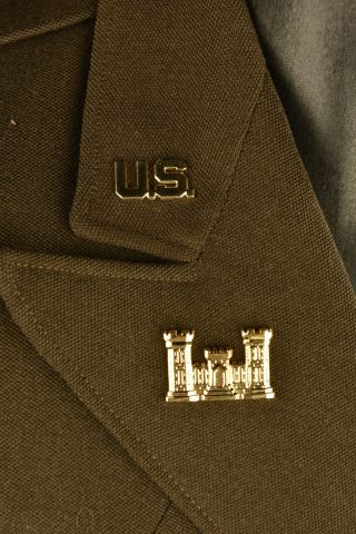 Blouson Ike en drap chocolat, tous les boutons sont présents, intérieur doublé en satinette chocolat, sans marquages visibles. Grades de capitaine au niveau des pattes d’épaule. Patch de... en savoir plus