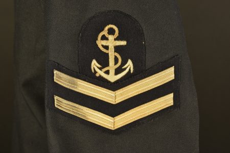 Comprenant un jumper en tissu coton noir, insigne de manche composé de deux chevrons en fil d’or surmontés d’un insigne représentant une ancre de marine. Fermeture éclaire... en savoir plus