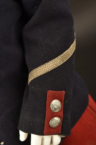 Uniforme d’enfant d’un sergent du 7ème régiment d’infanterie en garnison à Cahors. Tunique modèle 1893 fermant sur le devant par 7 boutons, épaulettes à franges d’or.... en savoir plus