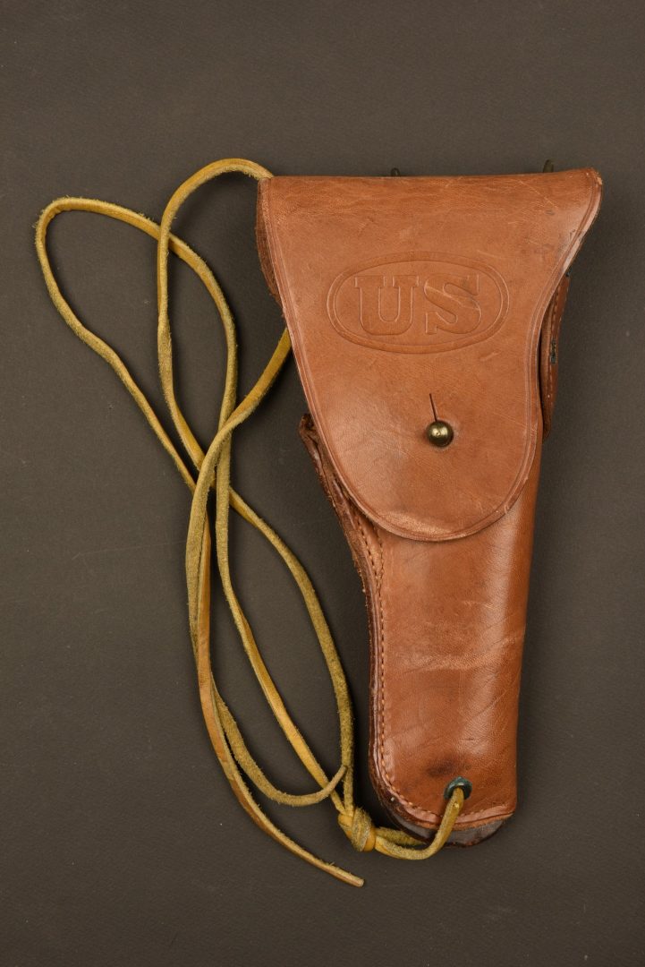 En cuir marron, très beau marquage US sur le rabat. Le crochet de fixation au ceinturon est présent. Fabrication Boyt 42. Dragonne en cuir présente. A noter une légère usure et patine de la... en savoir plus
