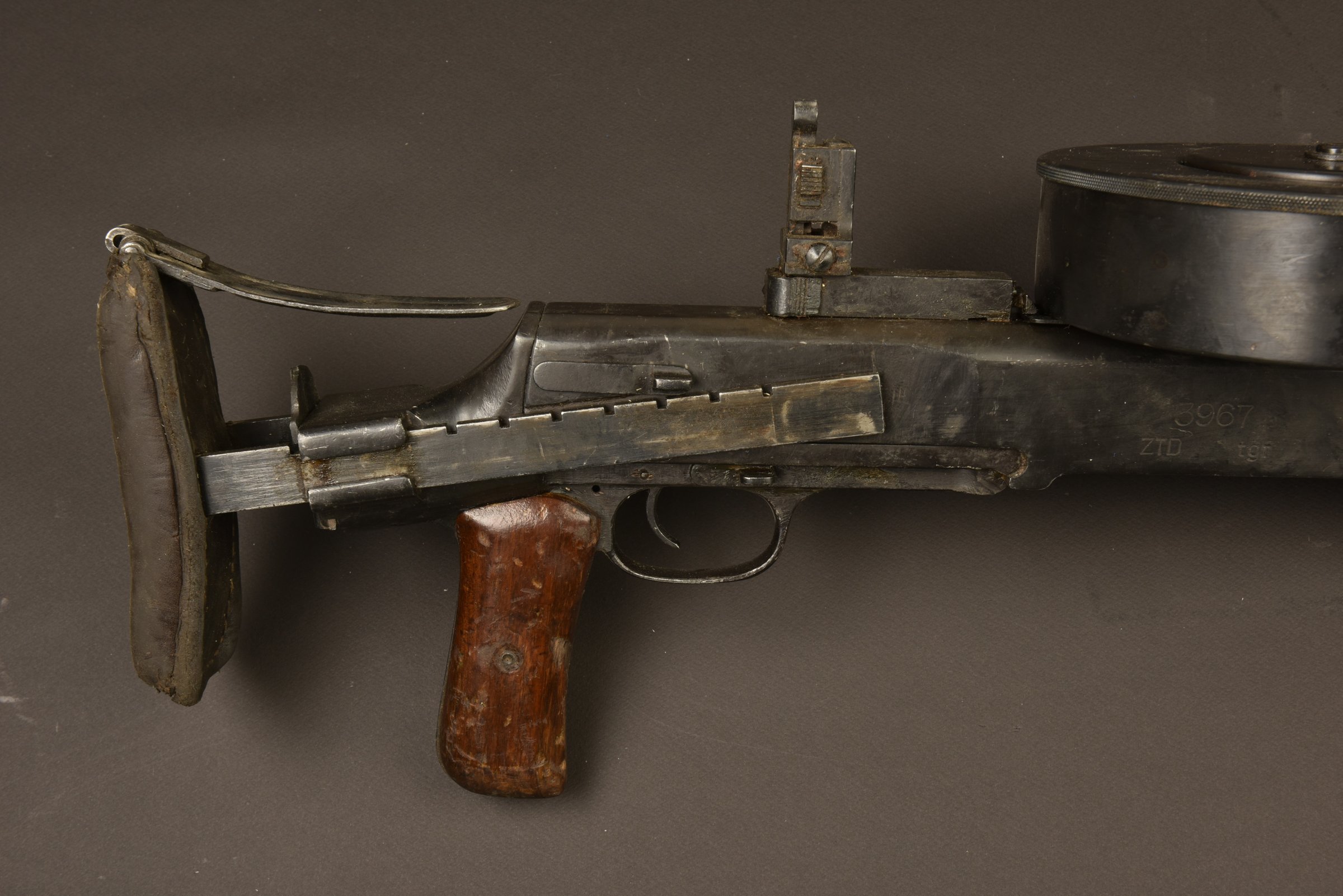 Calibre 7,62X54r. Numéro 3967. Longueur 127 cm. Catégorie C-9. Mitrailleuse avec chargeur specifique et crosse retractable nombreuse trace de manipulation et oxydation legere par endroit. Arme... en savoir plus