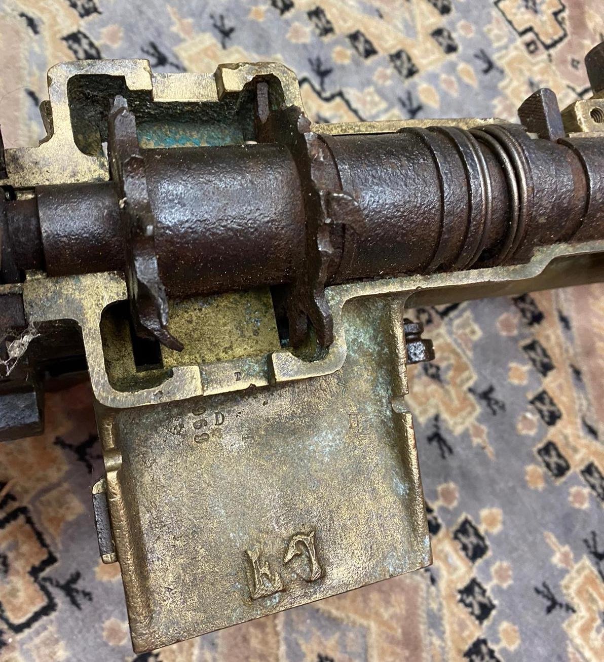 En métal et laiton. Plaquette marquée Mitrailleuse Mle 1907, Saint Etienne 1910. Numéro 764. Visiblement complète. A noter une certaine usure et patine de la pièce, ainsi qu’une... en savoir plus