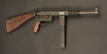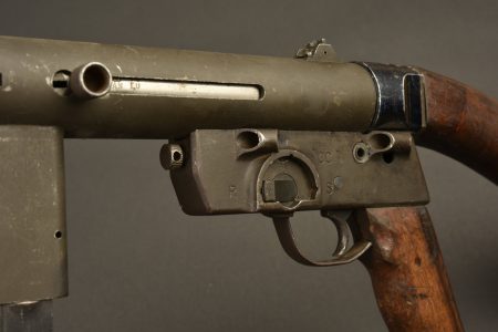 Pistolet mitrailleur GEVARM D-4 CALIBRE 9X19. Numero 355949, longueur 58 cm. CATEGORIE C-9. Modele avec Crosse bois, phosphaté, à noter quelques traces de manipulation et une fissure sur la... en savoir plus