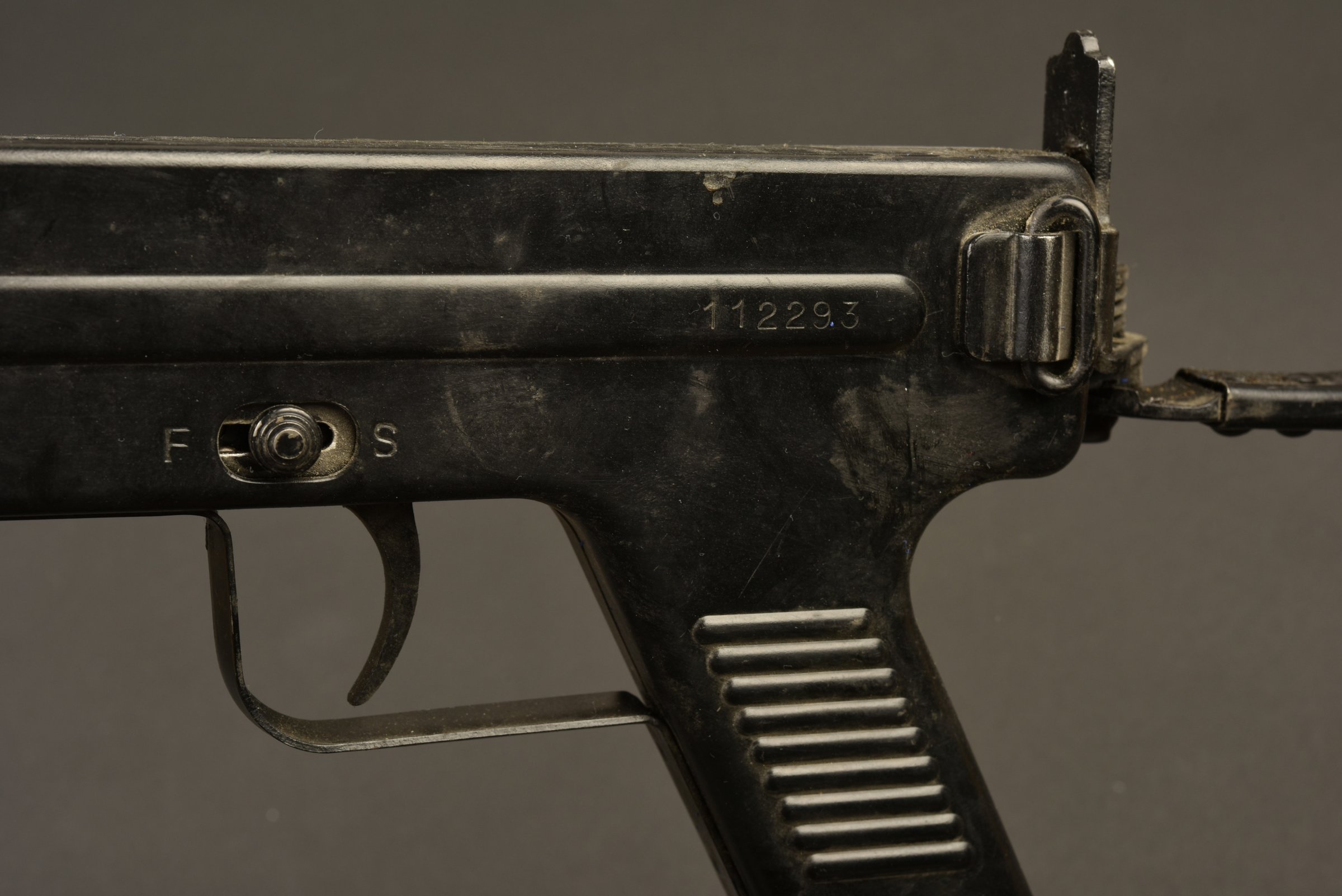 CALIBRE 9X19. Numero 112293. Longueur 80 cm. CATEGORIE C-9. Culasse manoeuvrable et tir a sec possible, peinture au four, six trous percées sous le canon et point de soudure sur la carcasse... en savoir plus