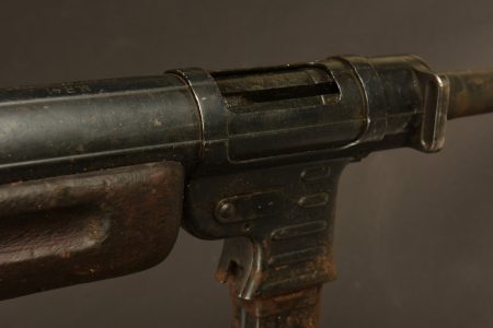 Belle crosse en bois. Marquages MP 41 Patents Schmeisser C G Haenel Suhl. Nombreux poinçons AN. Chargeur présent mais oxydé. Bout du canon fortement oxydé. Numéro 4366. Calibre 9 x 19. A... en savoir plus