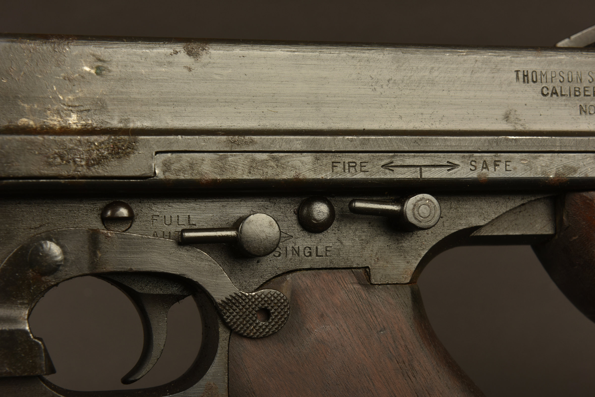 Crosse, poignée et garde main en bois. Chargeur présent. Bretelle manquante. Bâti bien marqué Thompson, et US Property. Fabrication Auto Ordnance Corporation Bridgeport Connecticut USA. Crosse... en savoir plus