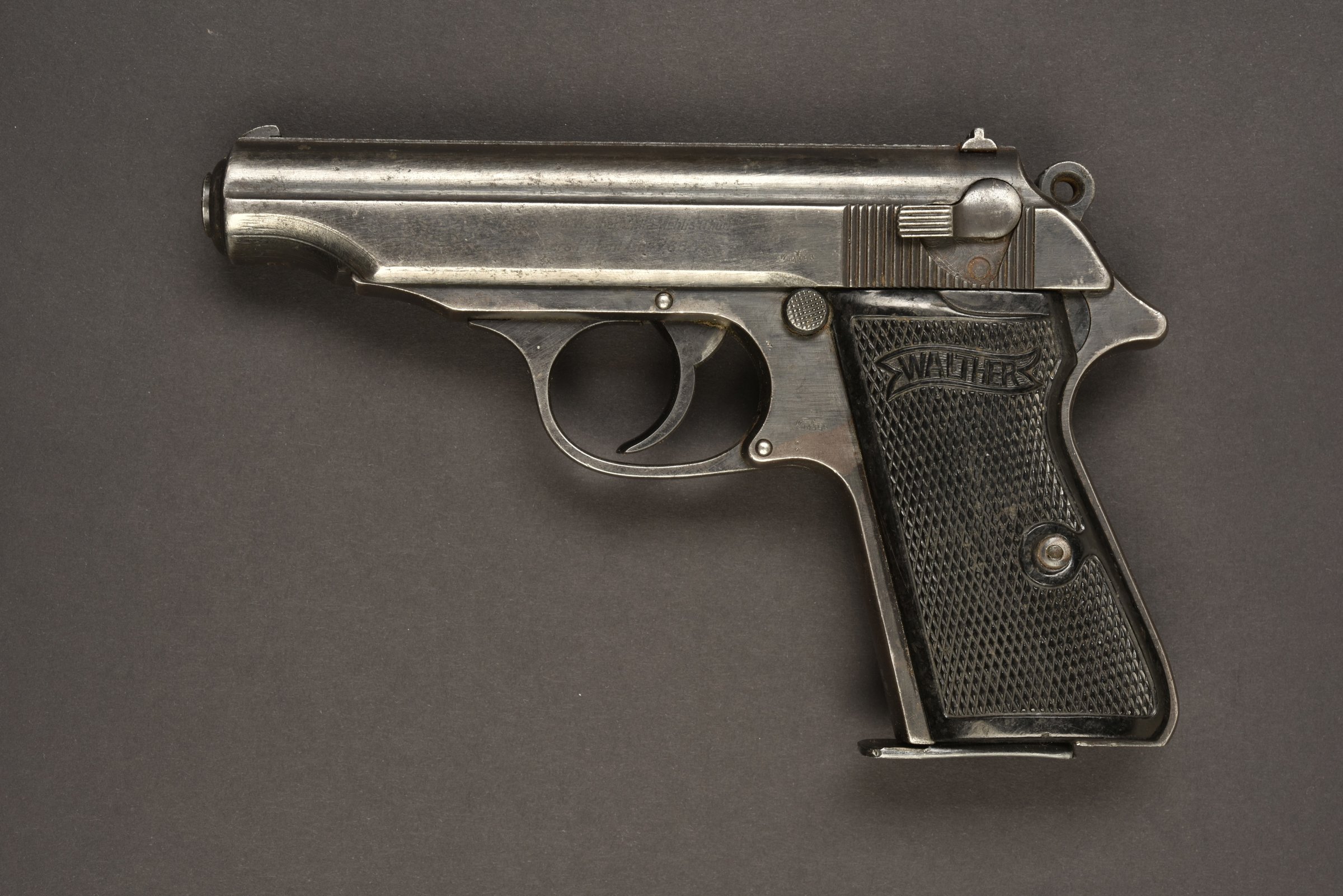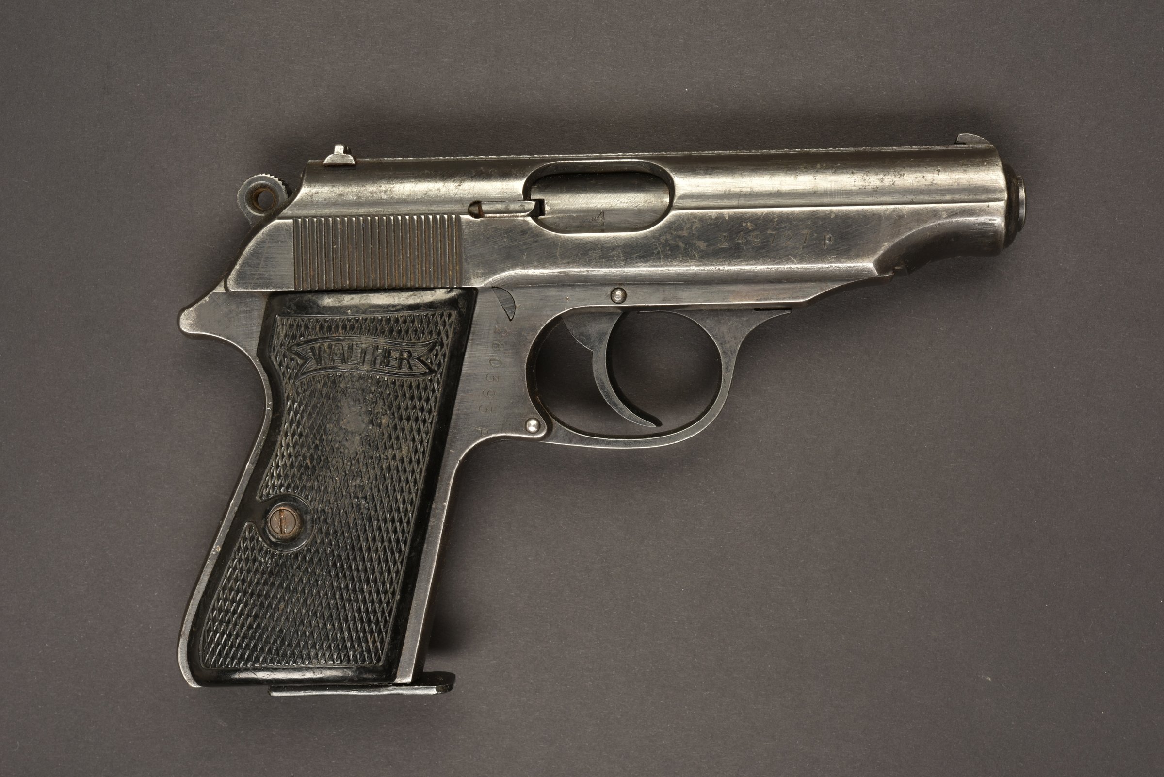 Pistolet WALTHER PP. CALIBRE 7,65 Br. Numéro 280393P/249727. Longueur 18 cm. CATEGORIE C-9. Bronzage noir et marquage en partie effacé, WAA359 bien visible, fabrication ZELLA MELIS, nombreuse... en savoir plus