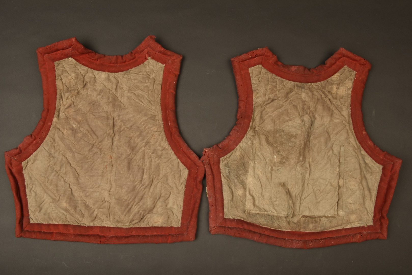 Peu courante matelassure de cuirasse en deux parties, confectionnée en toile blanche piquée et en toile de jute sur une autre, la bordure et les bourrelets sont garnis de drap garance. Une... en savoir plus
