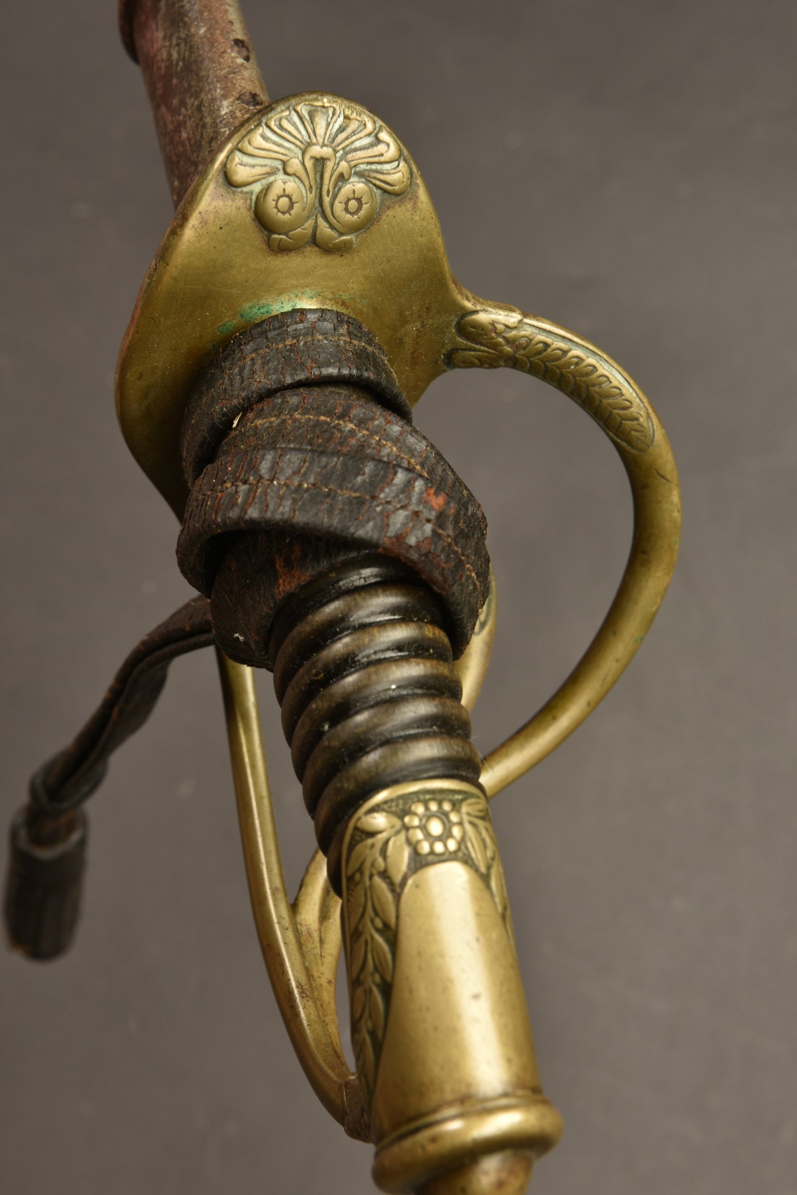 Sabre d’officier de cavalerie modèle 1883. Poignée en corne. Monture laiton à 2 branches sur arc de jointure. Lame à dos plat et pan creux en très bon état. Marquée de la manufacture... en savoir plus