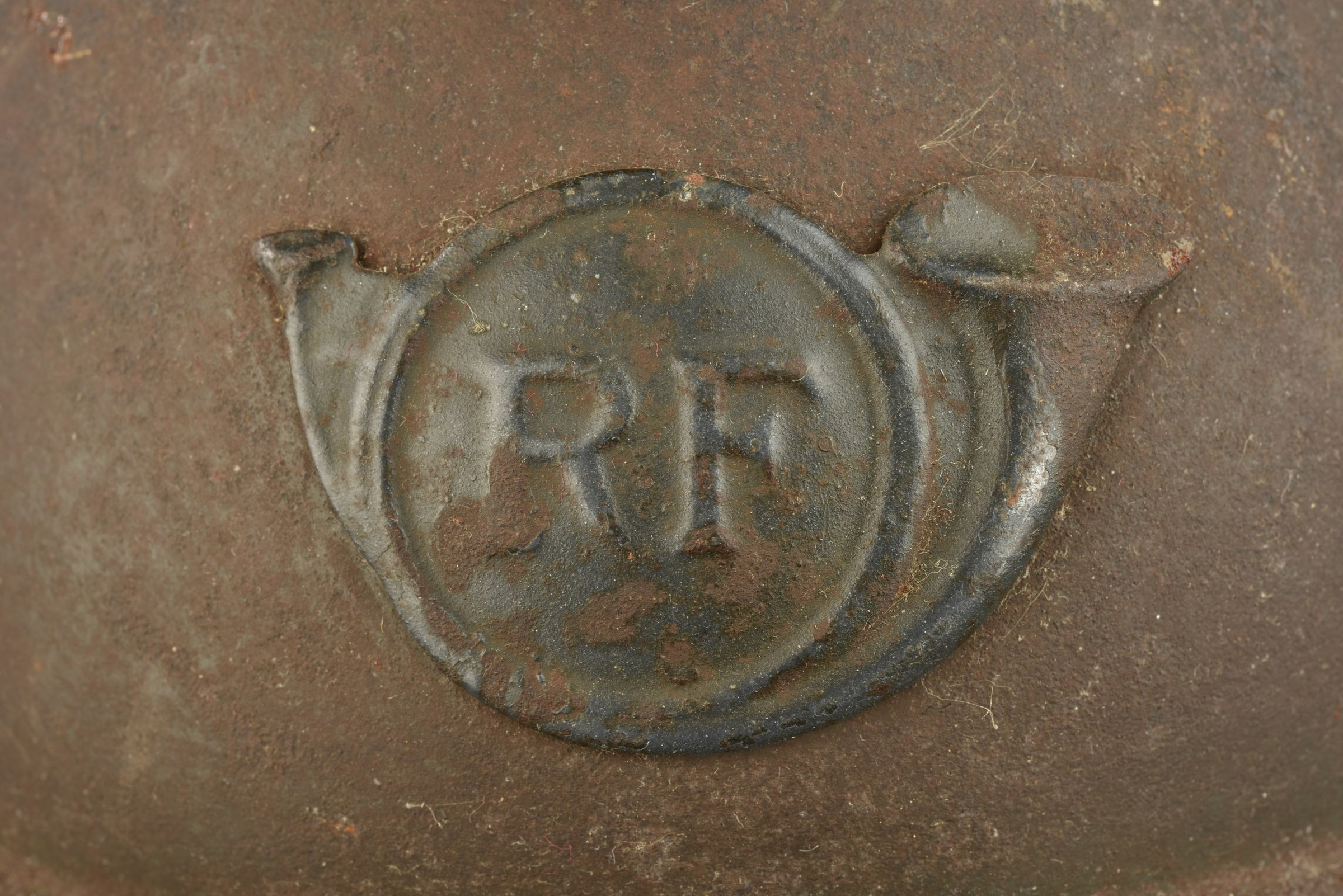 Attribut modèle 1915 de chasseurs possédant 85% de sa peinture. Coiffe en cuir du premier type possédant l’intégralité de ses dents de loup ainsi que quelques petits trous de souris.... en savoir plus