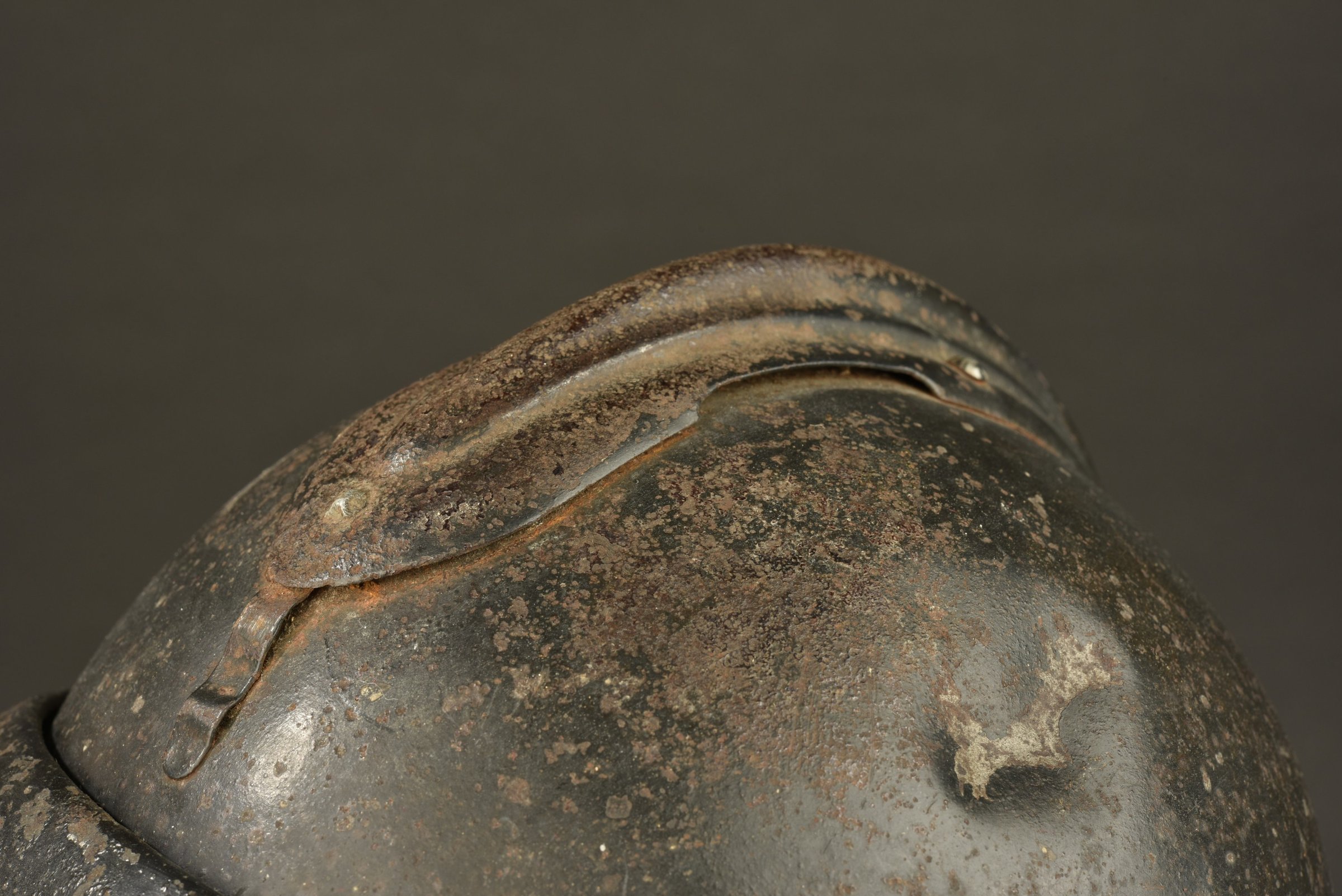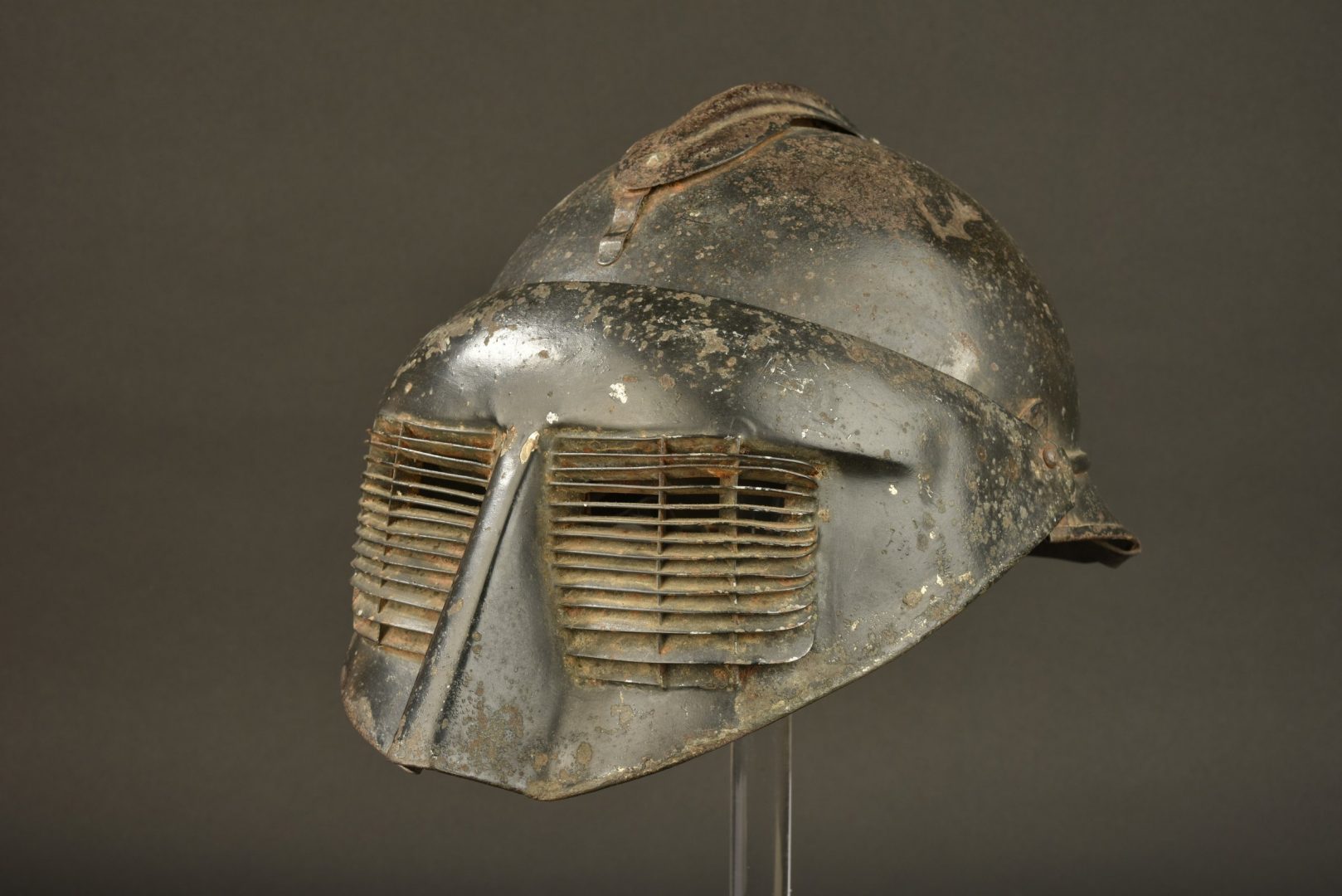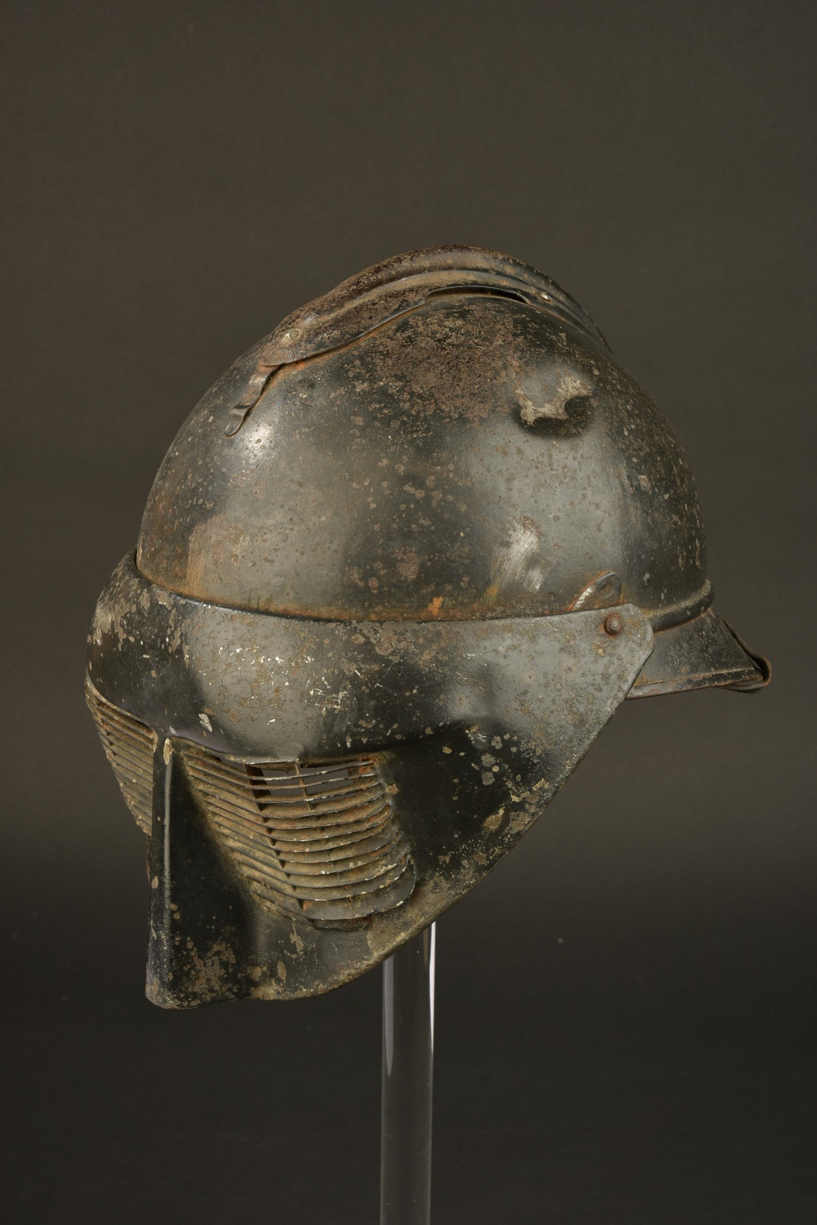 Bel ensemble d’un caque Adrian modèle 1915 modifié réglementairement pour recevoir la visière du système Polack. Le cimier du casque a été déplacée vers l’arrière facilitant... en savoir plus