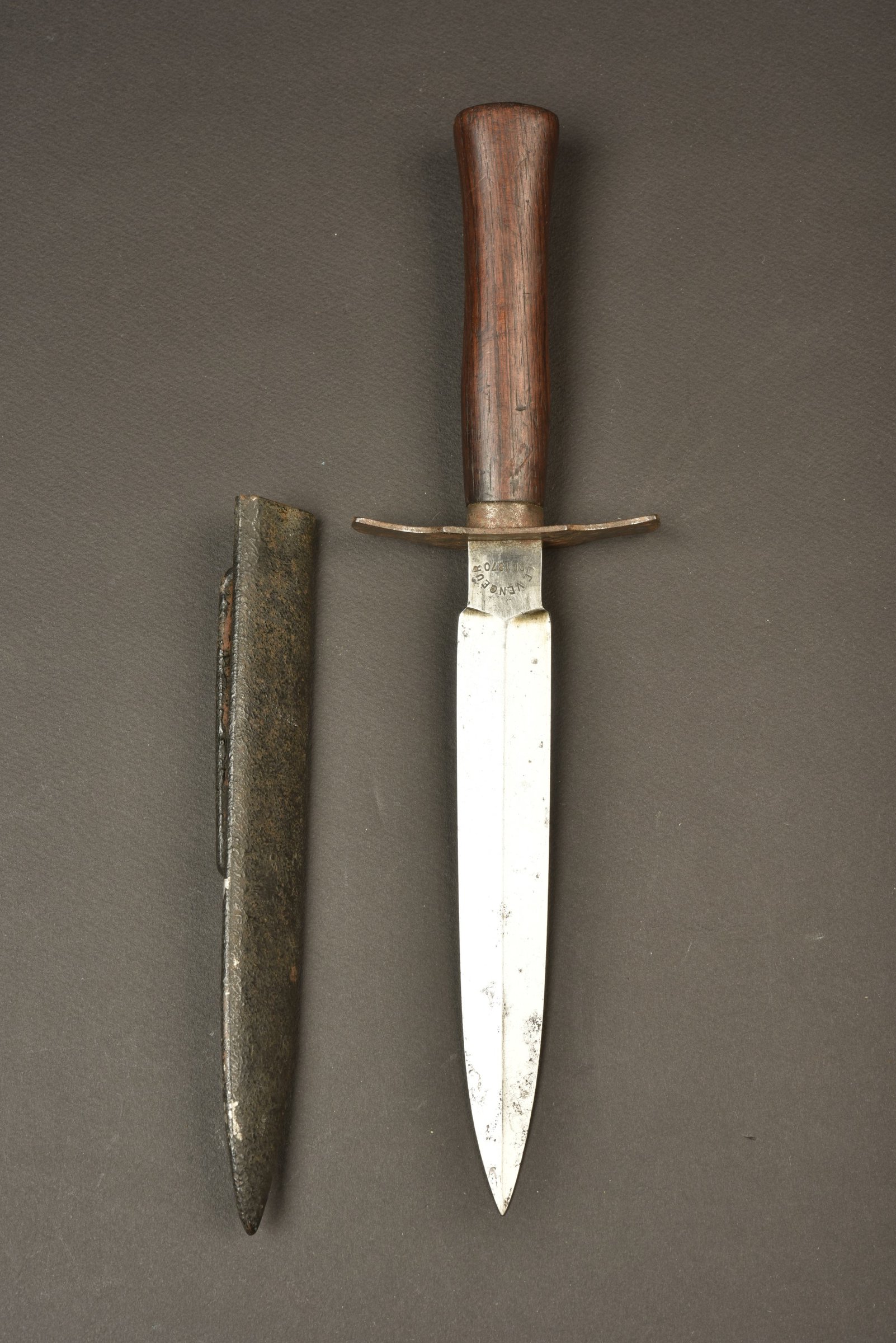Fabrication Chabrol numéro 8, lame dans sa longueur d’origine bien marquée Le Vengeur de 1870. A noter un éclat en haut de la poignée et des traces de rouille. Fourreau d’origine... en savoir plus