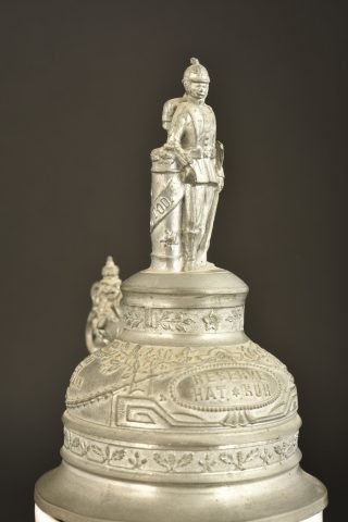 Chope de réserviste en porcelaine du Tambour Walter du 18 IR bavarois de Landau. Hauteur environ 30,3 cm. Motifs rehaussés à la main. Bon couvercle avec un soldat debout, pièce de pousse en... en savoir plus