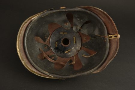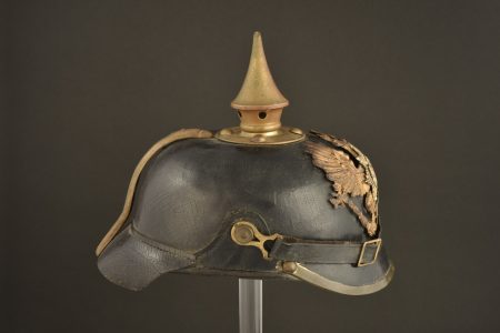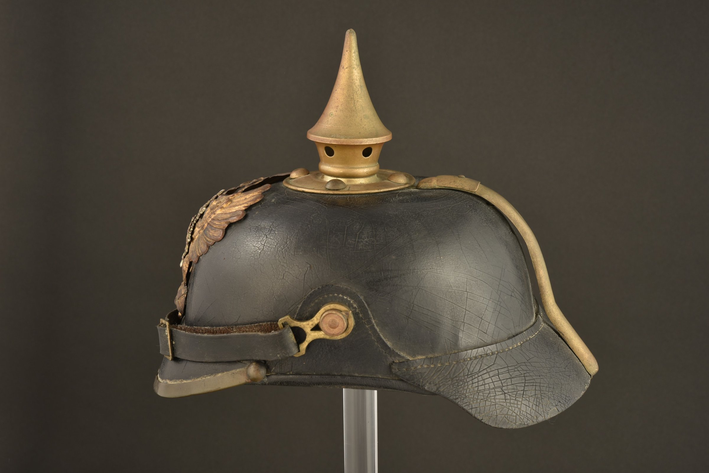 Casque à pointe troupe modèle 1895 à garnitures laiton. Très jolie plaque de réserviste en laiton, croix de l’orbe manquante, avec armes du Oldenburg sur étoile rayonnante et croix de... en savoir plus