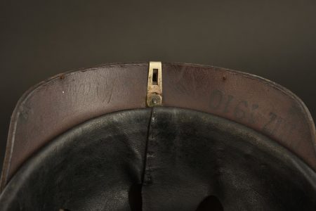 Casque à pointe troupe modèle 1895 toutes garnitures en maillechort. Plaque à l’aigle allemand. Bombe en bon état, non repercée, bien marquée sur la nuquière PB17 et 1910, ainsi... en savoir plus
