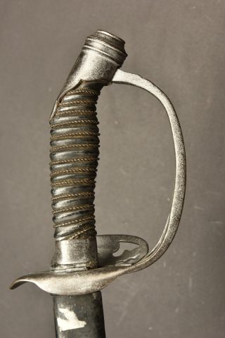 Sabre d’officier d’infanterie modèle 1884 monture en fer, fabrication de guerre. Poignée recouverte de basane avec filigrane et chiffre WRII en fer. Monture et garnitures recouverte... en savoir plus