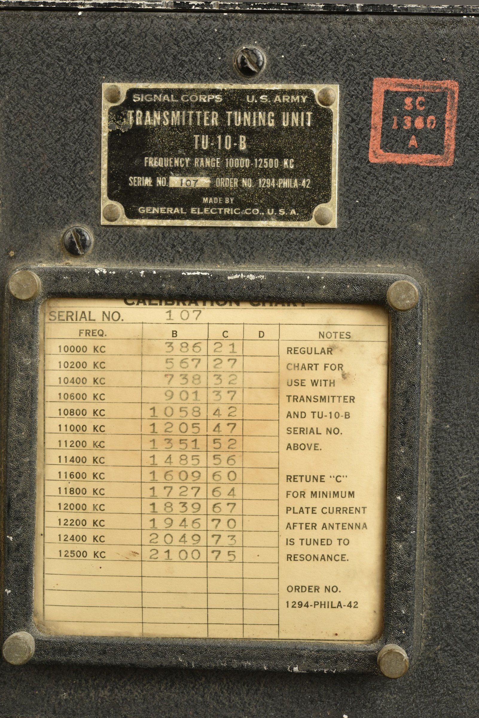 Caisson en métal, peinture à 70%, toutes les pièces mobiles sont fonctionnelles, éléments électriques absents. Plaquette du Signal Corps datée 1942, fiche de codage de fréquence présente.... en savoir plus