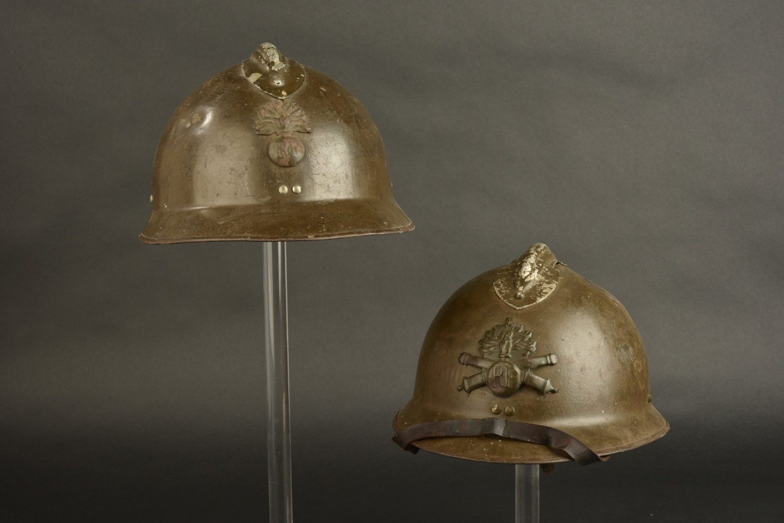 Comprenant un casque modèle 1926, attribut modèle 15 de l’artillerie, peinture marron kaki, coiffe intérieure en mauvais état. Un casque Adrian modèle 1926, attribut modèle 15 de... en savoir plus
