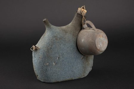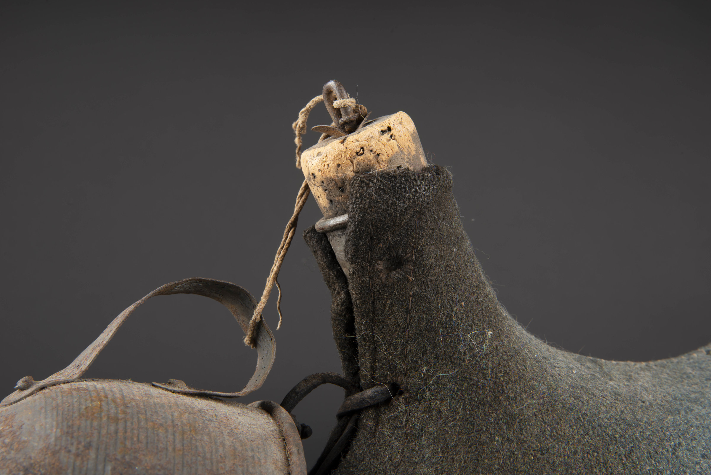 Comprenant un bidon modèle 1877 recouvert d’une housse recouvert d’un drap bleu horizon, étiquette au fond portant le nom illisible du soldat, courroie de transport accidentée. Une... en savoir plus