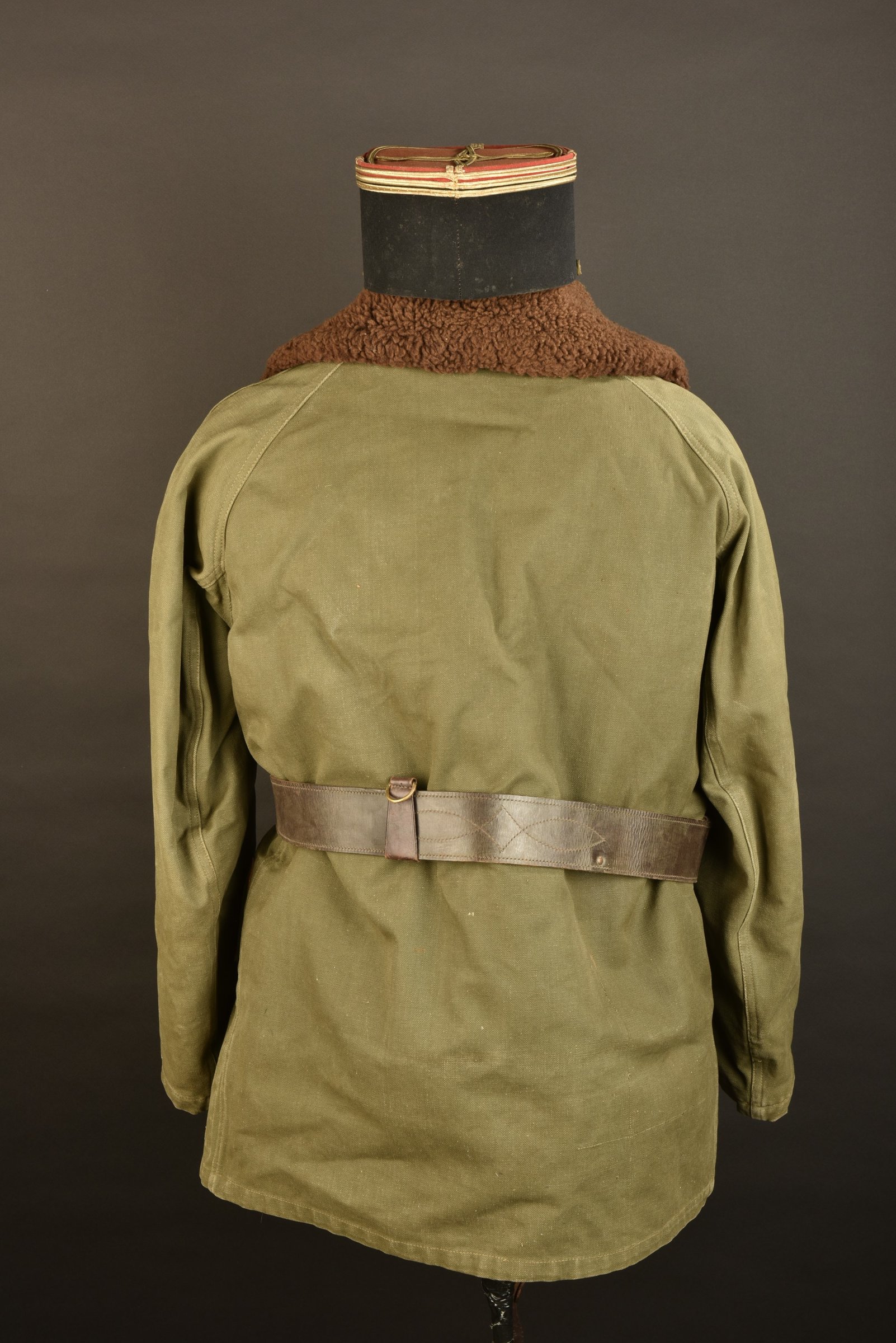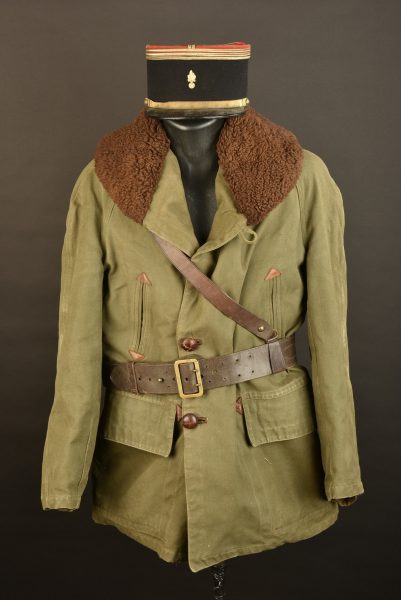 Comprenant un képi de capitaine d’infanterie, grenade rapportée métallique, initiales du soldat dans le bandeau en cuir. Un ceinturon baudrier d’officier. Une canadienne type Corps... en savoir plus