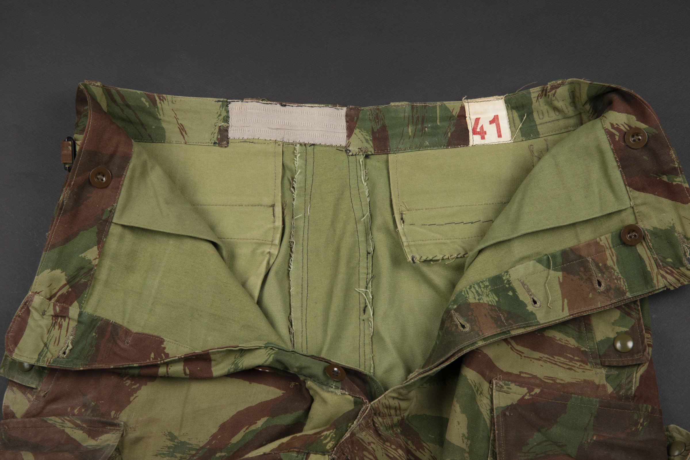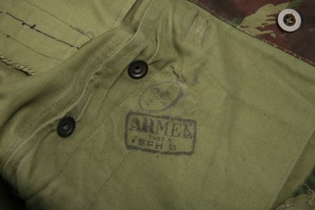Confectionné en tissu 47/54, camouflage frais, pressions fonctionnelles en peinture, daté 1957. Retaillé à l’arrière par un maitre tailleur afin de l’élargir. Etat II+