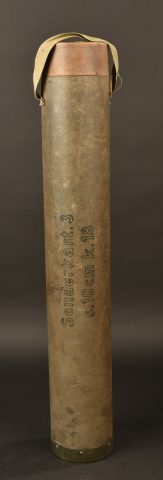 Container en carton, couvercle et sangle en toile présents, marquage Sonderkart 3 S 10cm K 18. Code fabrication cba40 au cul du container. On y joint un lot de cartes allemandes datées des... en savoir plus
