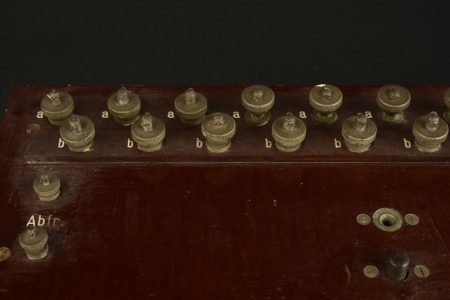 Comprenant une caisse en bois et bakélite, la façade avant est manquante, nombreux emplacements de câblages. Partie bakélite marquée Abfr. Plaquette du fabrication RB & Co, datée 1939,... en savoir plus