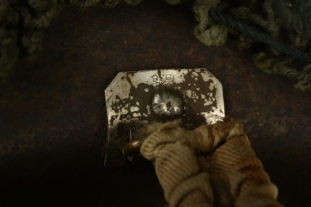 Casque MKII avec insigne britannique. Coque de casque en métal, marquages illisibles. Reste d’insigne visible. Coiffe présente. Fabrication BMB 1939, taille 7. Jugulaire MKII, indication... en savoir plus