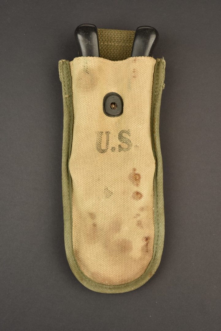 Pince coupante US. Housse en toile OD bicolore, bouton pression fonctionnel, beau marquage US, le crochet de fixation au ceinturon est présent. Fabrication Lee 1945. Pince coupante en métal,... en savoir plus