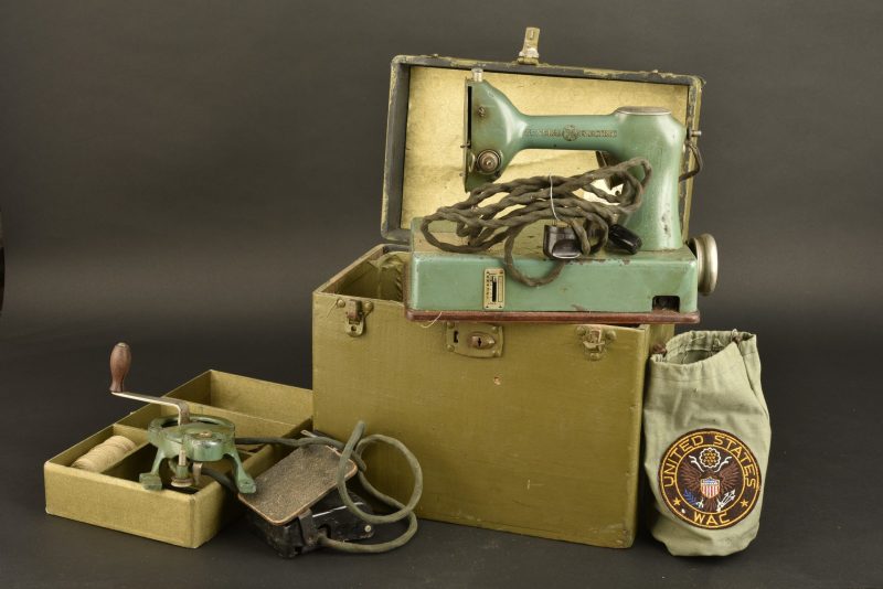 Machine à coudre US. Complète dans sa boite d’origine, fabrication General Electic USA. Nombreux accessoires. Poignée de transport présente. Les crochets de fermeture sont fonctionnels.... en savoir plus