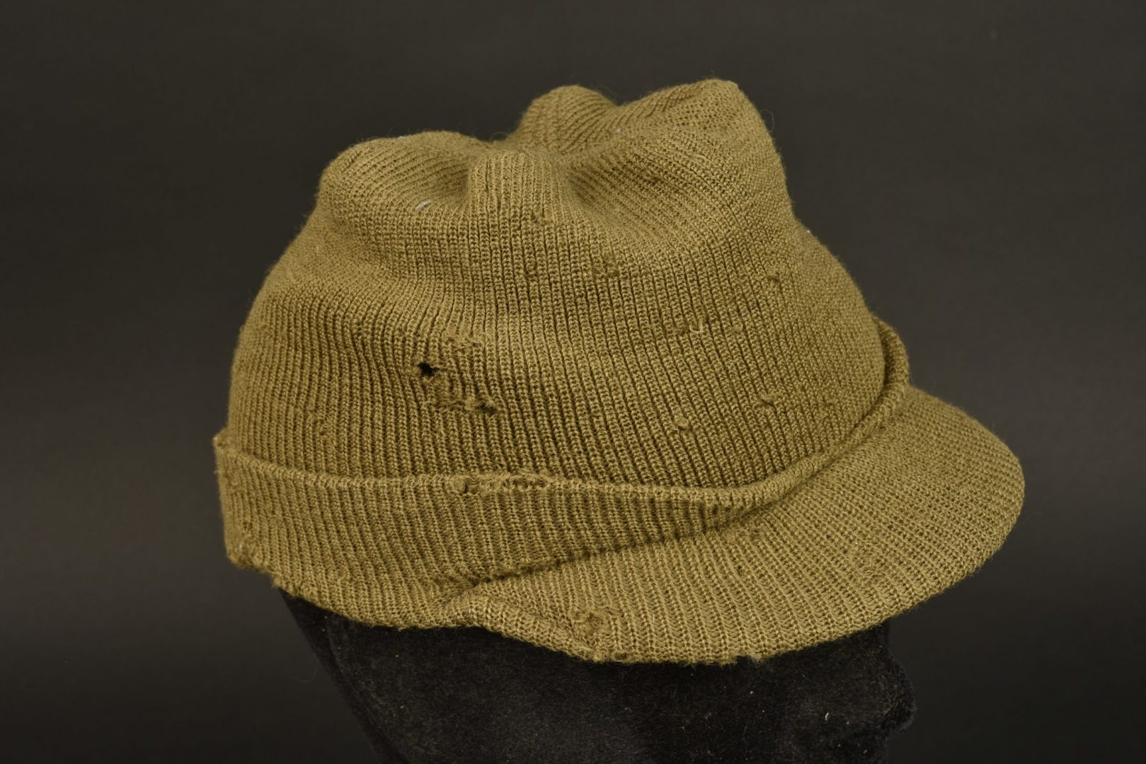 Beanie US. En lainage kaki. Visière en très bon état. Etiquette indiquant une taille M. A noter une certaine usure et patine de la pièce, ainsi que des trous de mite. Collection Thierry Juif... en savoir plus