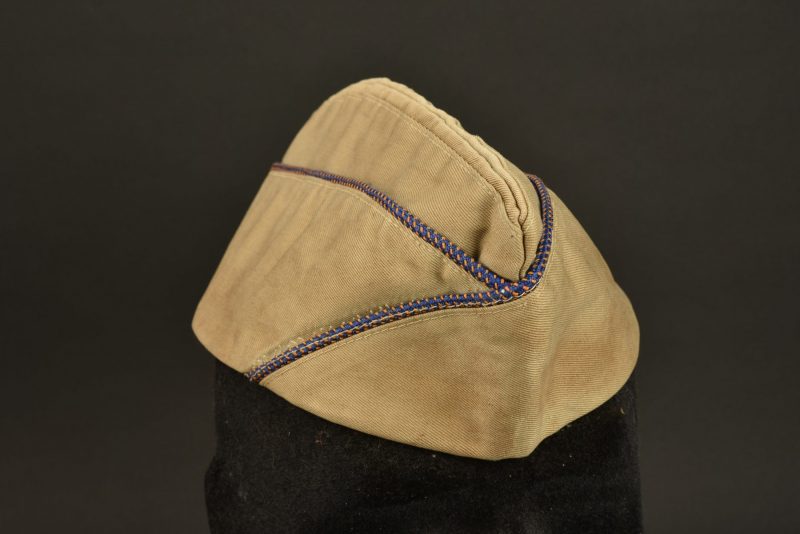Calot chino USAAF. En tissu chino, liseré typique de l’USAAF. Intérieur doublé en satinette beige. Marquages 727-36. A noter une certaine usure et patine de la pièce, ainsi que de nombreuses tâches. Etat II+. Photos supplémentaires sur www.aiolfi.com. Additional photos on www.aiolfi.com.