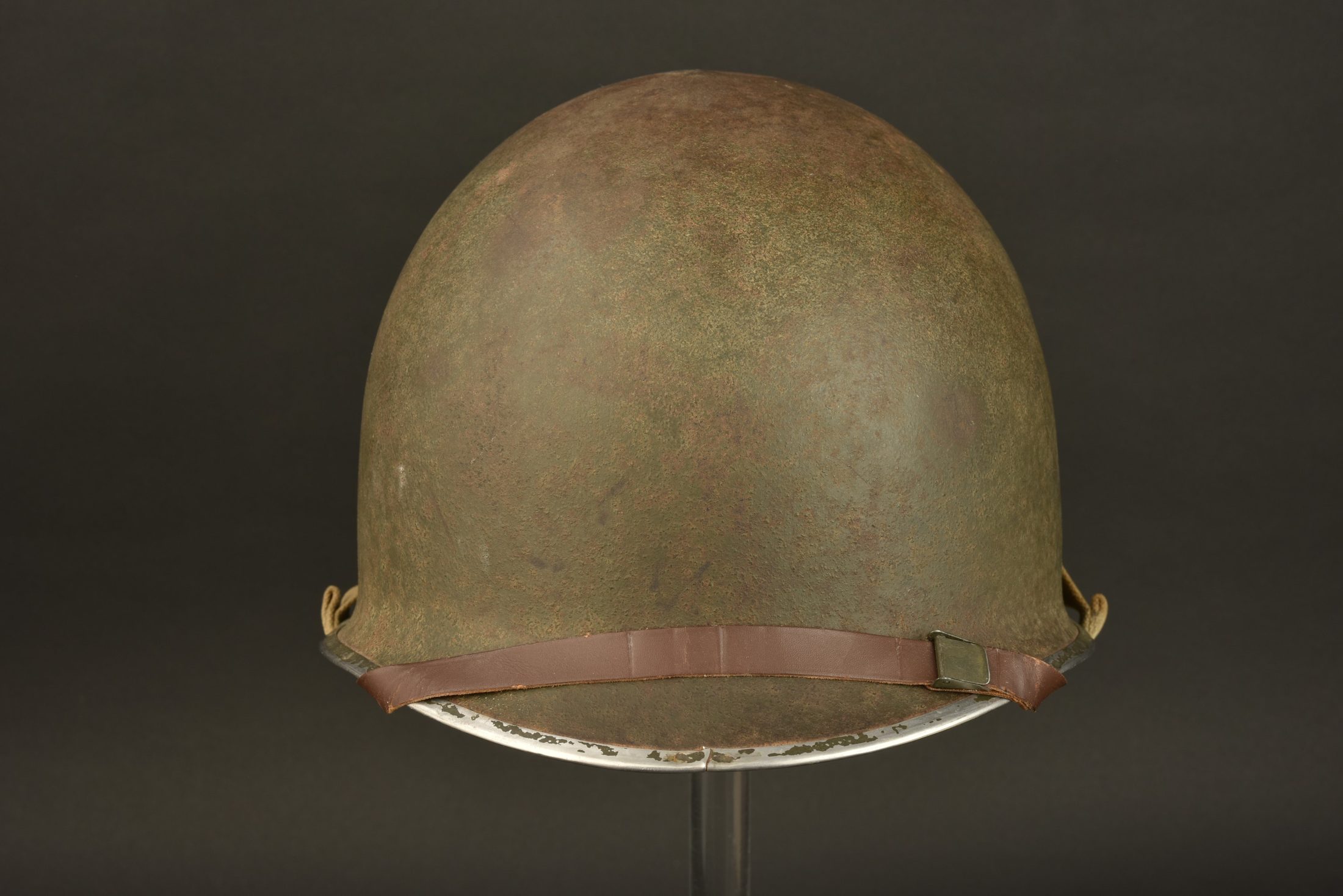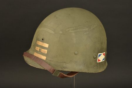 Casque US de capitaine de la première armée française. Coque de casque USM1. Fermeture du jonc à l’avant. Numéro de lot illisible. Pontets fixes. Jugulaire montées d’origine.... en savoir plus