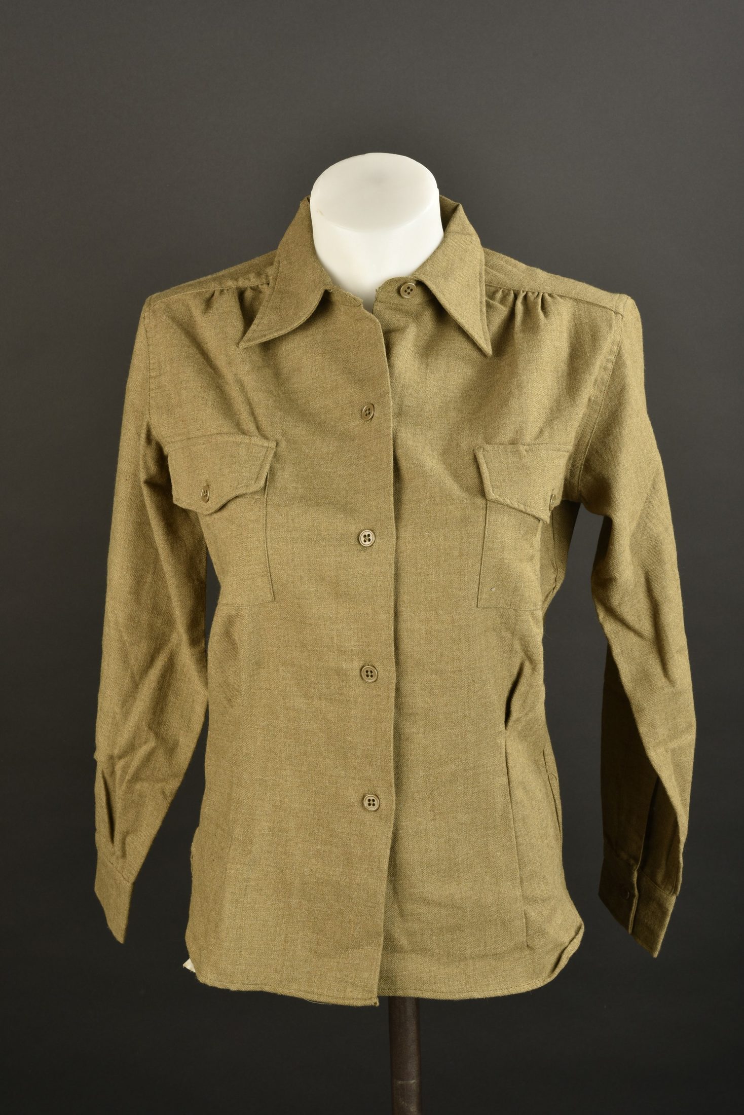 Chemise moutarde Waac. En drap kaki dit moutarde. Tous les boutons sont présents. Modèle sans bavette anti-gaz. Etiquette dans le col indiquant une taille 32 W-27 1-4SLV SHT. Plusieurs... en savoir plus