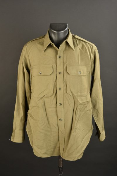 Chemise d’officier US. En drap kaki, modèle pour officier. Tous les boutons sont présents. Modèle ne disposant pas de bavette anti-gaz. Sans marquages visibles. A noter une certaine usure... en savoir plus