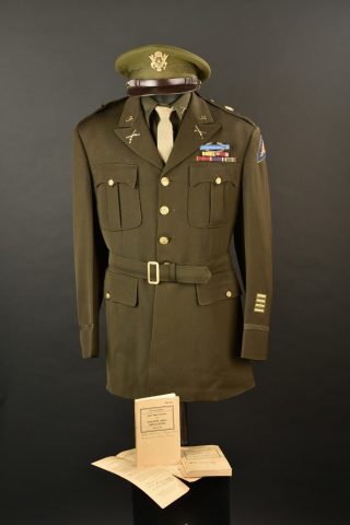 Uniforme de Major de la 7ème Armée US. Comprenant une vareuse en gabardine chocolat. Tous les boutons sont présents. Ceinture complète. Insignes de col d’infanterie US, modèles pour... en savoir plus