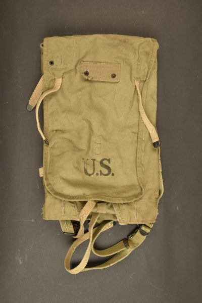 Sac à dos M-28. En forte toile OD, toutes les sangles sont présentes. Beau marquage US sur le rabat. Le triangle est manquant. Fabrication Baker Lockwood MFG Co Inc 1941. A noter une légère... en savoir plus