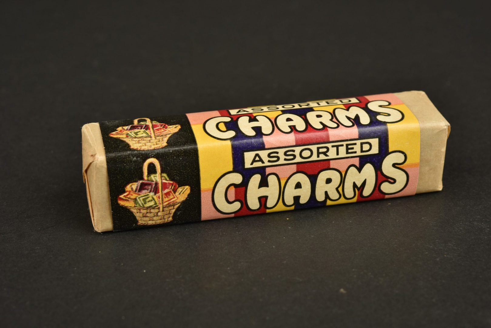 Bombons Charms. Paquet complet, jamais ouvert. Belle étiquette en couleur. Fabrication Charms Co Bloomfield in NJ USA. 1940. A noter une légère usure et patine de la pièce. Collection Thierry... en savoir plus