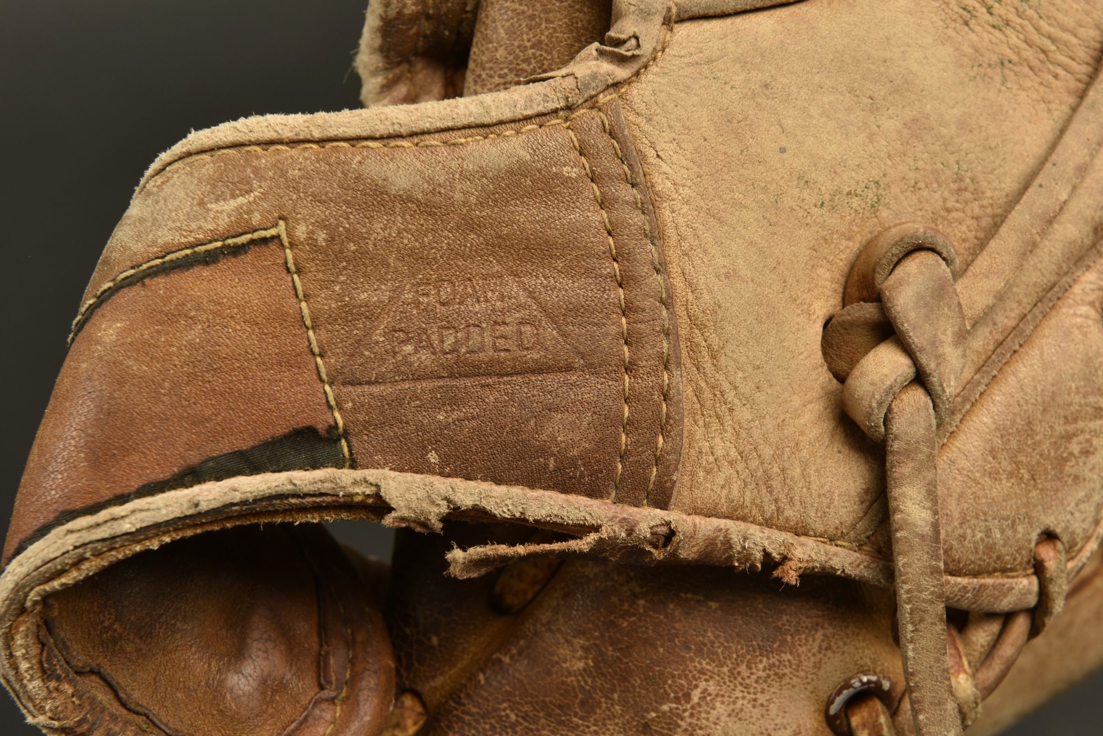 Gant de baseball US. EN cuir marron. Tous les cordons en cuir sont présents. Modèle pour gaucher. Fabrication illisible, l’étiquette est manquante. A noter une certaine usure et patine de... en savoir plus
