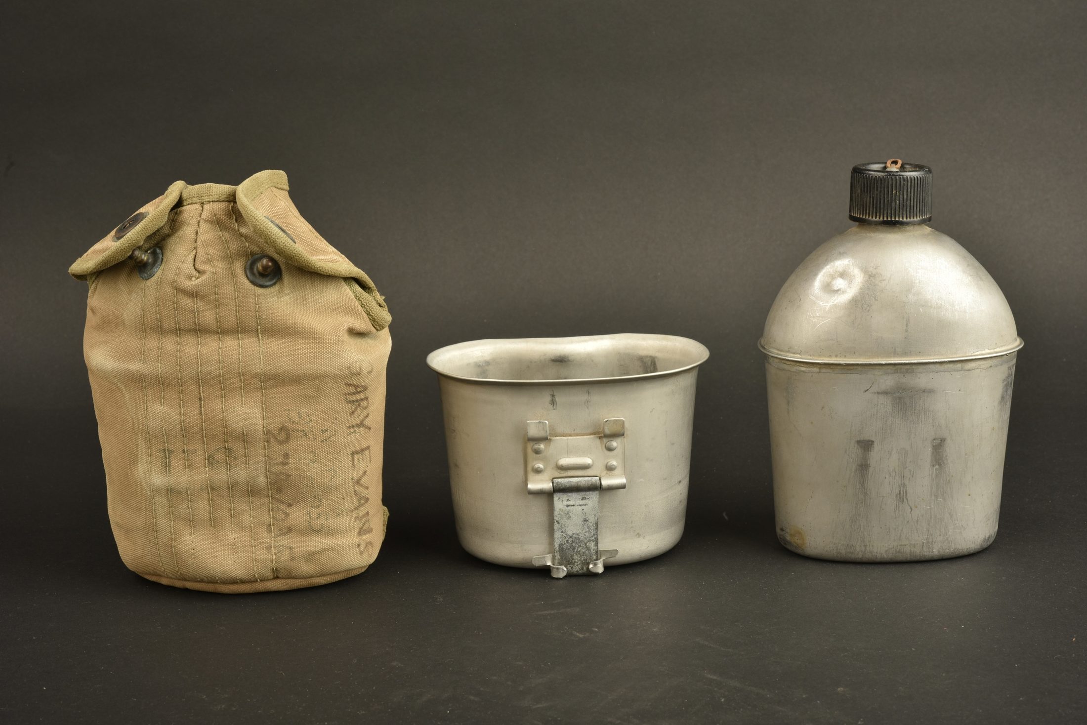 Gourde parachutiste nominative. Housse en forte toile OD, renfort parachutiste au dos. Reste de marquage US sur la face avant. Les boutons pression sont fonctionnels, les crochets de fixation au... en savoir plus