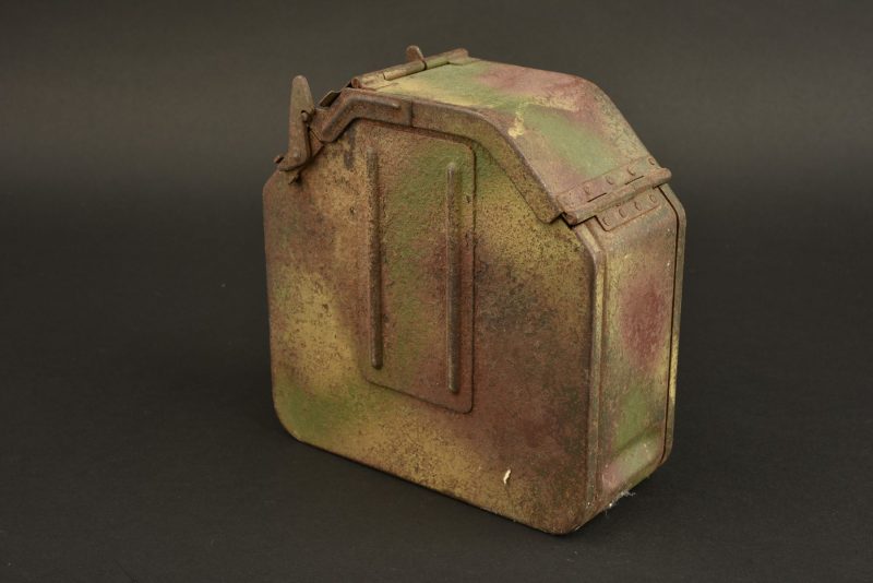 Patronenkasten 36 camouflée. En métal, poignée présente. Couleur camouflé trois tons à 80%. L’authenticité de la peinture n’est pas garantie. A noter une certaine usure et... en savoir plus
