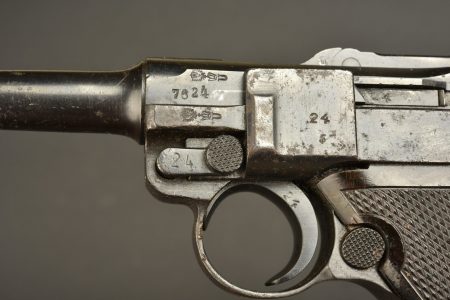 Pistolet P08 catégorie C9. Bronzage à 70%. Nombreuses traces d’oxydation. Plaquettes en bakélite. Chargeur présent, fond en bakélite. Fabrication Byf 1938, numéro 7624. Arme pas au même numéro. Arme neutralisée au nouvelles normes européenne par le Banc d’Epreuve de Saint Etienne en 2022. L’acquéreur d’une arme neutralisée classée en C9 outre la production d’une pièce d’identité en cours de validité (CNI, passeport, carte de résident) doit présenter soit l’original d’un certificat médical daté de moins de 1 mois attestant que l’état de santé physique et psychique du déclarant n’est pas incompatible avec le détention d’armes, soit la copie recto-verso du permis de chasse délivré en France ou à l’étranger accompagné d’un titre de validation de l’année en cours ou de l’année précédente et dans le cas des chasseurs avoir créé son compte détenteur dans le SIA, soit une copie recto-verso de la licence de tir d’une fédération sportive(tir ou ball-trap) en cours de validité assortie du tampon du médecin, soit la copie d’une carte de collectionneur d’armes. Dans tous les cas, si l’adresse de facturation est différente de celle figurant sur le titre d’identité envoyé, il faut joindre obligatoirement un justificatif de domicile de moins de 1 mois. La délivrance de l’arme n’aura lieu qu’après consultation du fichier FINIADA par un armurier. L’inscription de l’acheteur sur ce fichier entrainera automatiquement la nullité de la vente. Les formalités et la consultation du FINIADA seront facturées 60 € par arme achetée, sauf si un même acheteur est acquéreur de plusieurs armes. Etat II+. Plus de photos sur AIOLFI.COM, more photos on AIOLFI.COM.