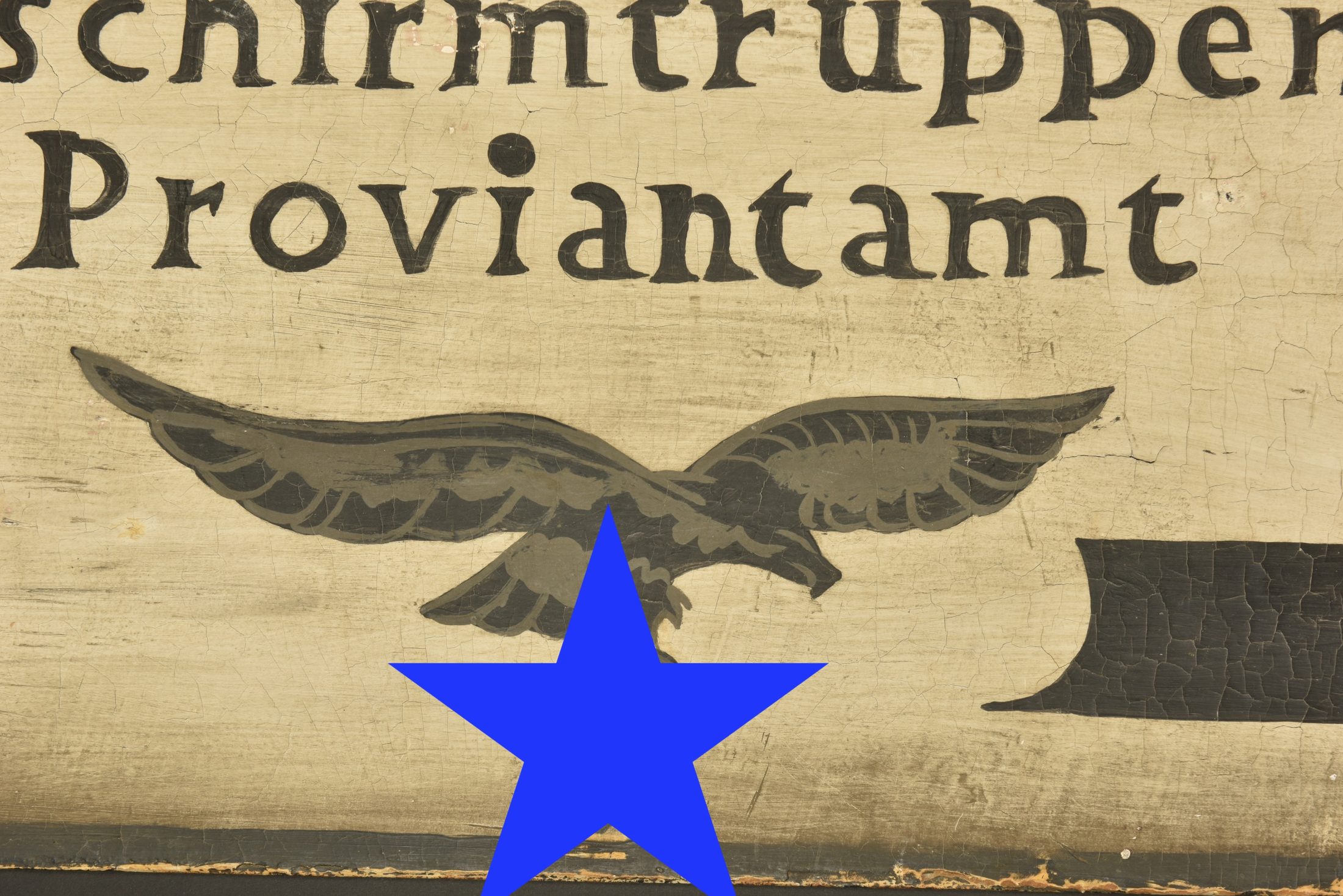 Reproduction de panneau parachutiste. En bois. Deux crochets de fixation en métal. Fond de couleur blanc, bordure de couleur noire. Marquages Rallshirmtruppe Proviantamt Nach Brest. Dimensions 30... en savoir plus