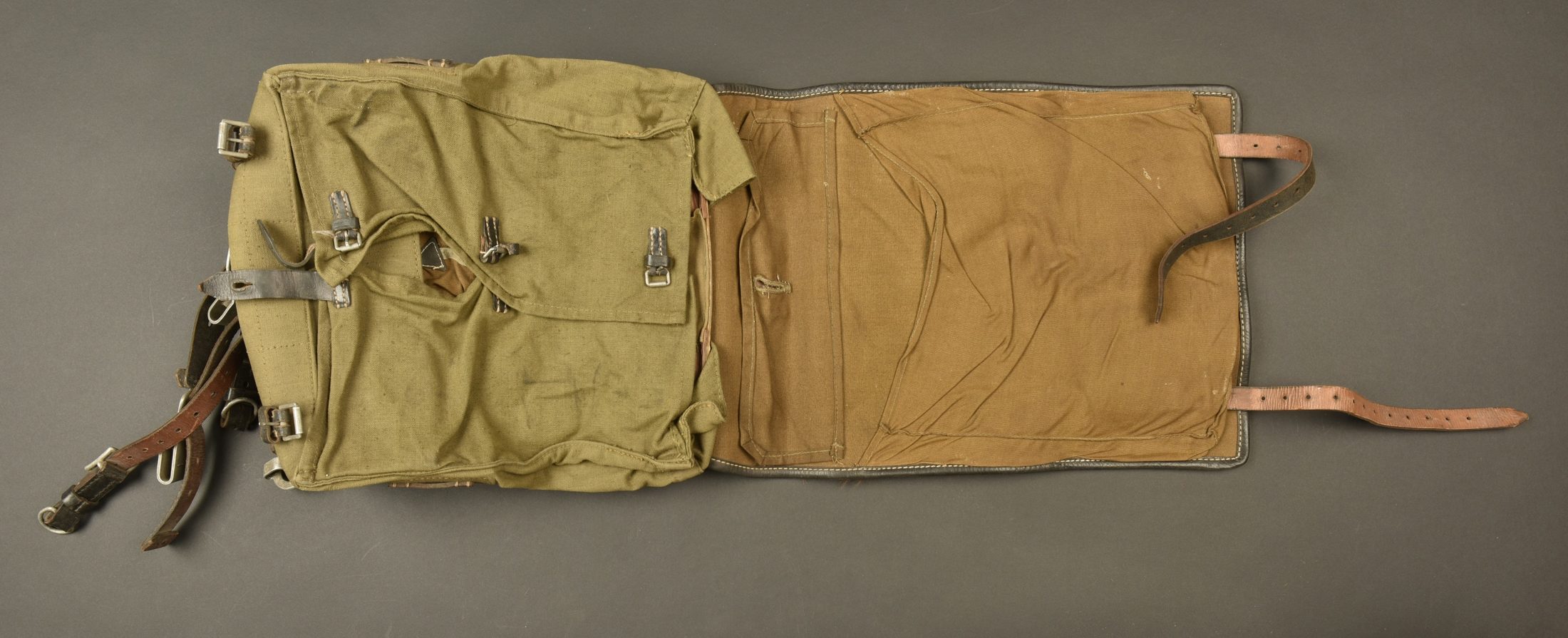 Sac à dos poils de vache. En forte toile coton Feldgrau. Poils de vache marron. Toutes les sangles sont présentes, ainsi que toutes les pièces métalliques. Les bretelles sont complètes. Daté... en savoir plus